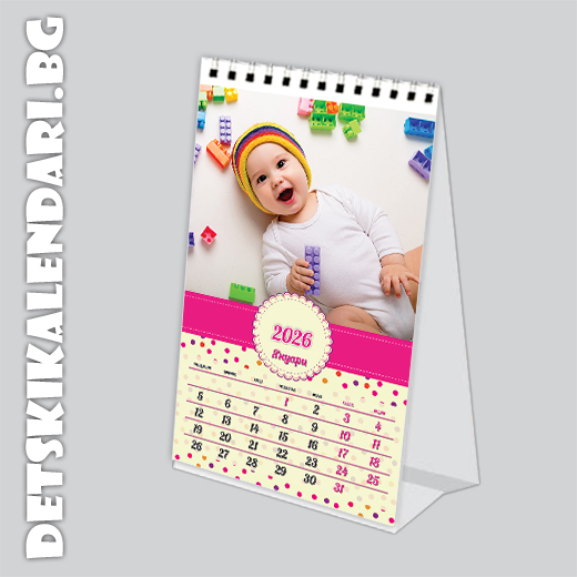 Моделът включва: заглавен лист, 12 листа (месец със снимка) и картонена подложка.