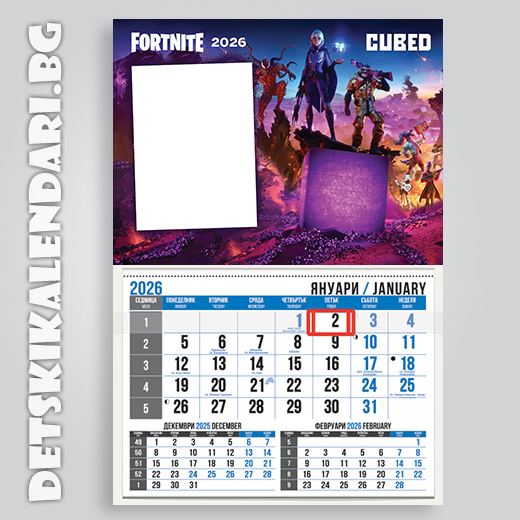 Детски календар с отпечатана снимка Fortnite за 2026г.