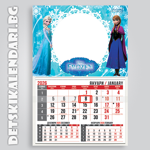 Детски календар с отпечатана снимка Frozen за 2026г.