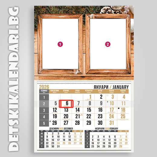 Още видове Детски календари 2026 със снимка - ОРИГИНАЛА|Детски календари КОЛАЖИ » Календари колажи с ДВЕ снимки|Детски календари КОЛАЖИ » Календари КОЛЕДНИ колажи