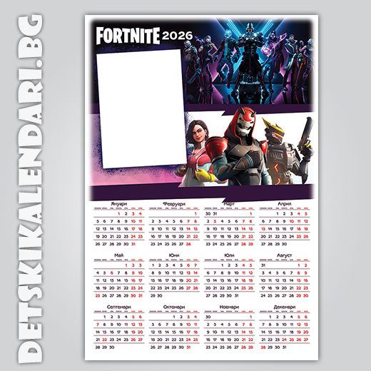 Еднолистови календари Fortnite 2026г. - пакет 5 бр. с подарък 12 бр дж. календарчета и 2 бр ключодържатели